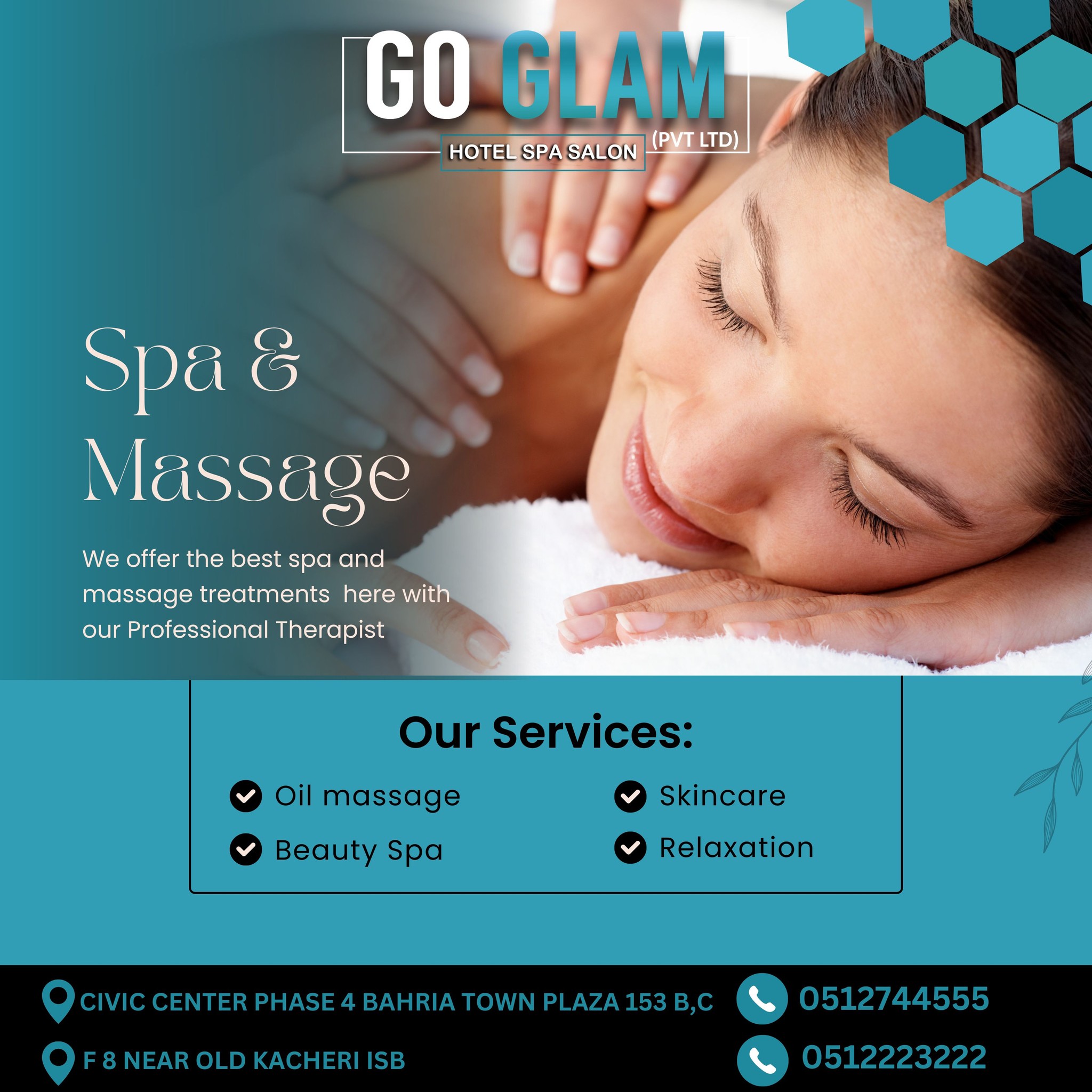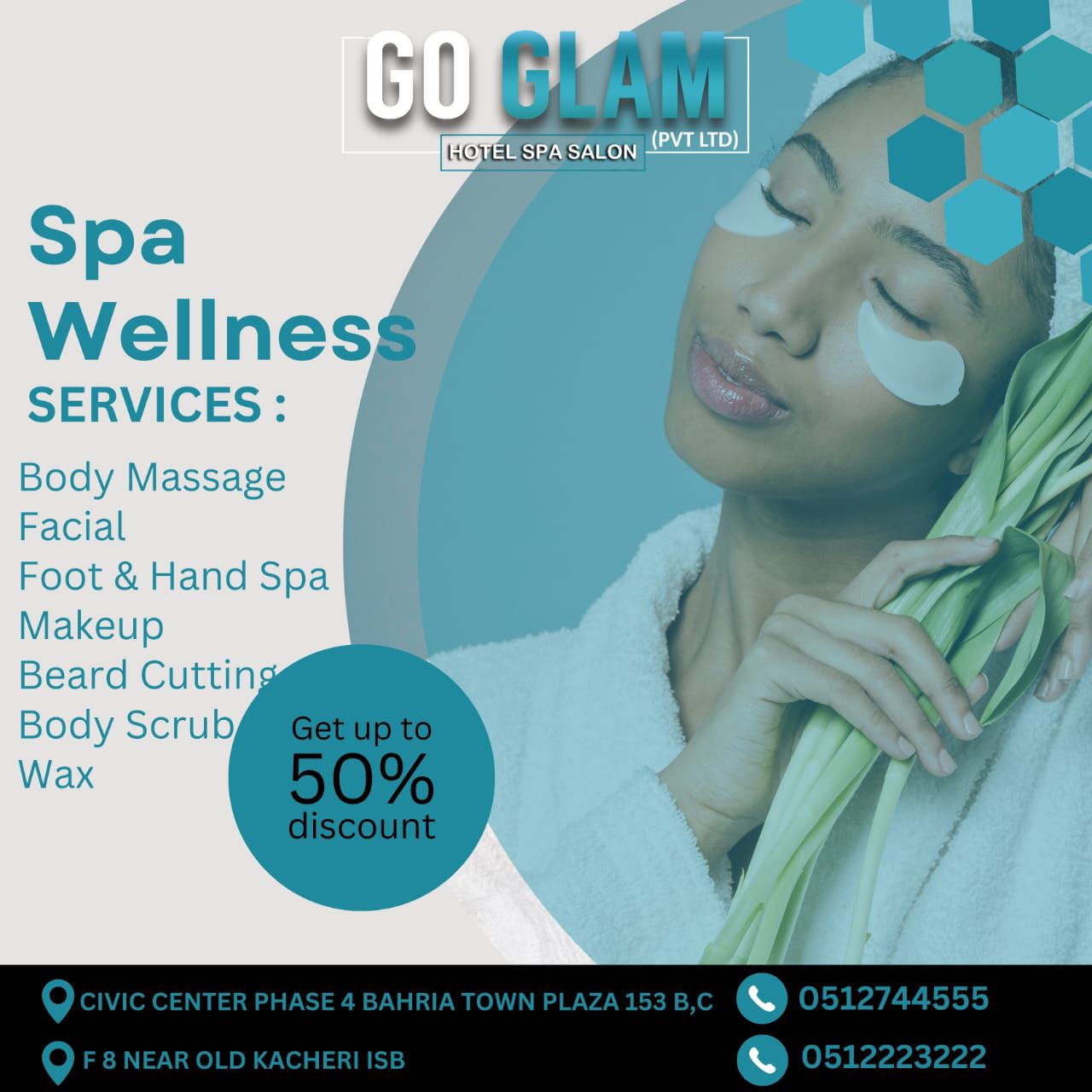 Go GlamHotel ServicesSpa ServicesSalon ServicesHerbal therapy"Experience Luxury at Go Glam: The Top Hotel Salon & Spa in Islambad. Indulge in premium beauty, wellness, and relaxation services, tailored to make you feel glamorous and rejuvenated."